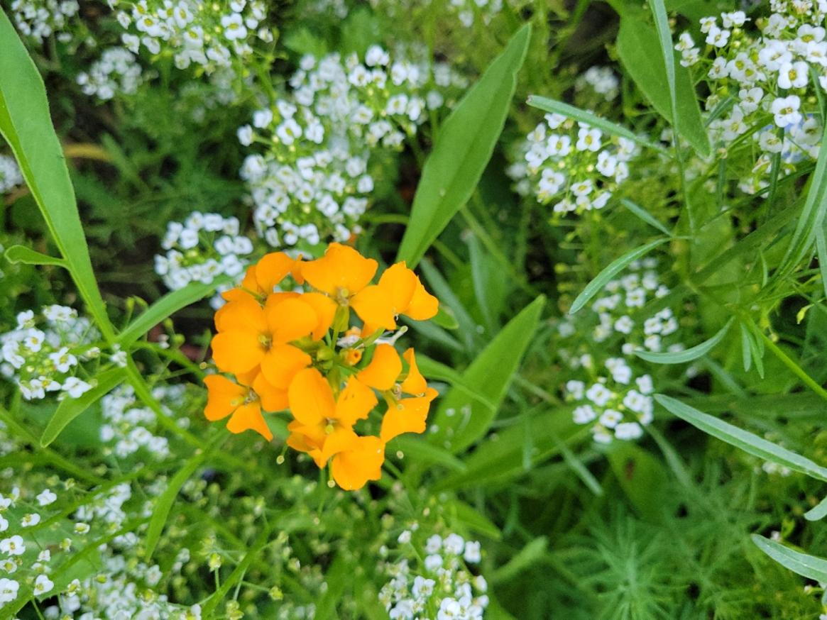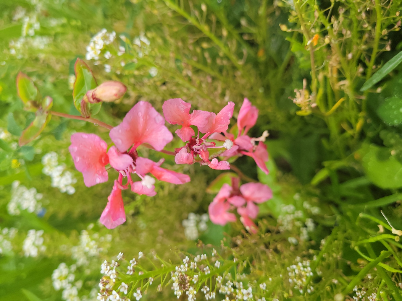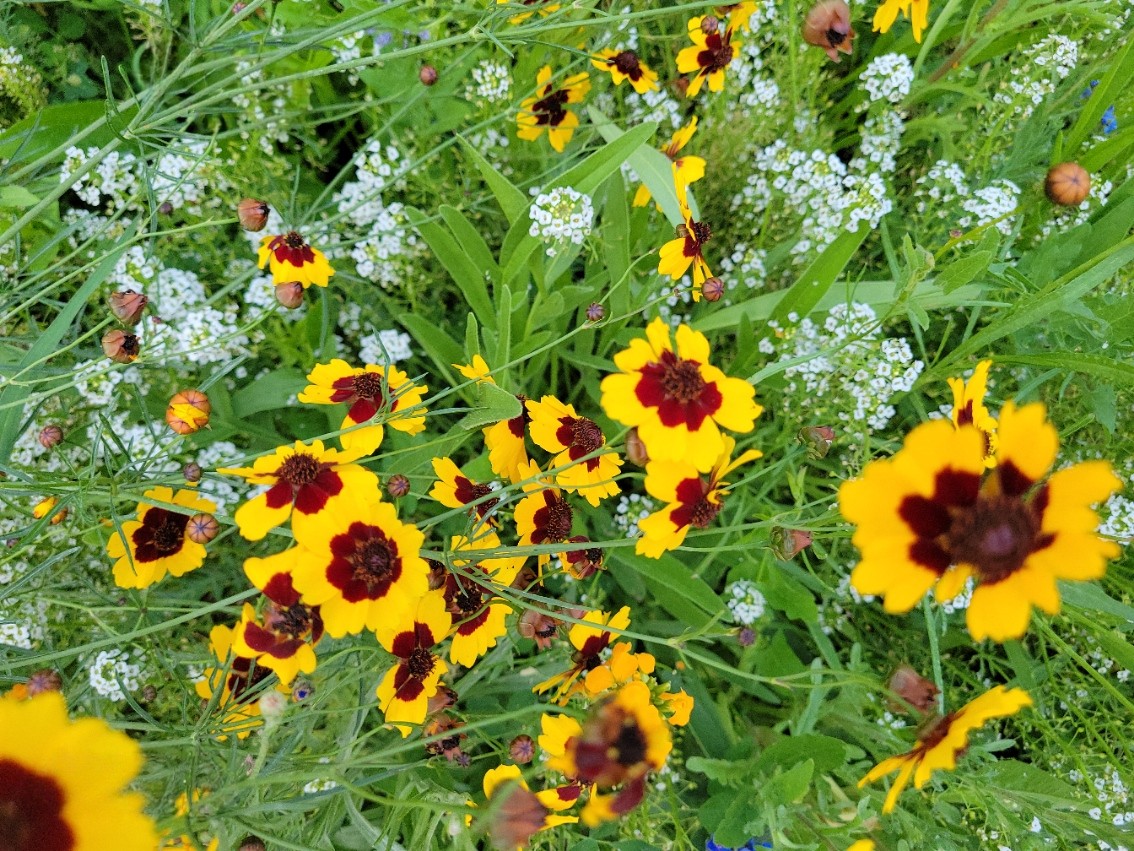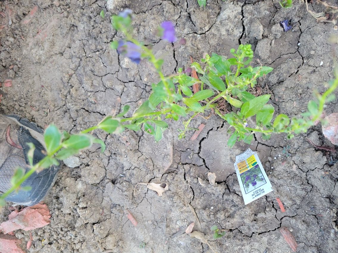 Angela delivered eight plant starters that she and Jasmine picked up at Ace Hardware since they were giving them away. These were placed bordering the creeekbed and if they flower next spring, that should look pretty.